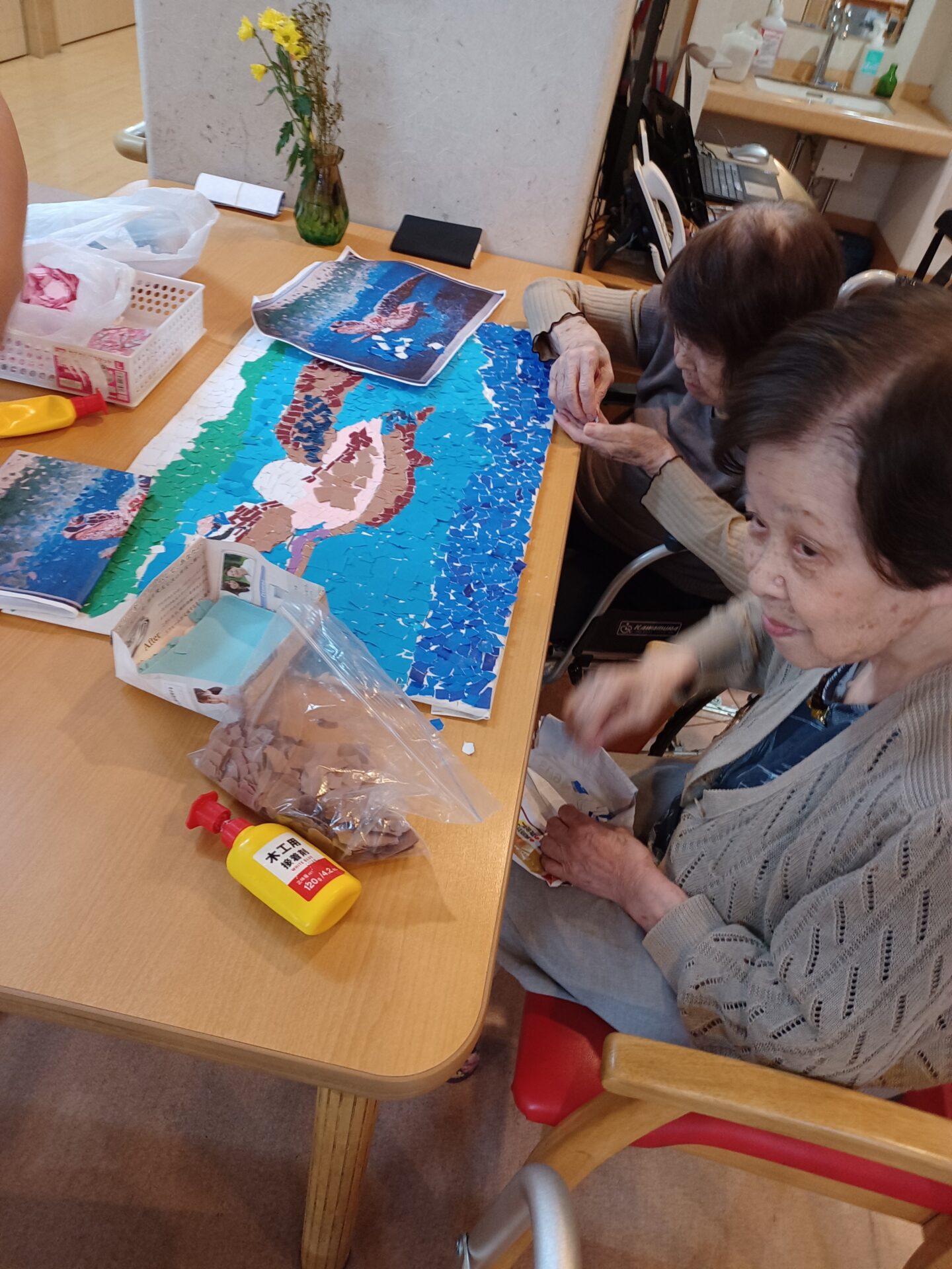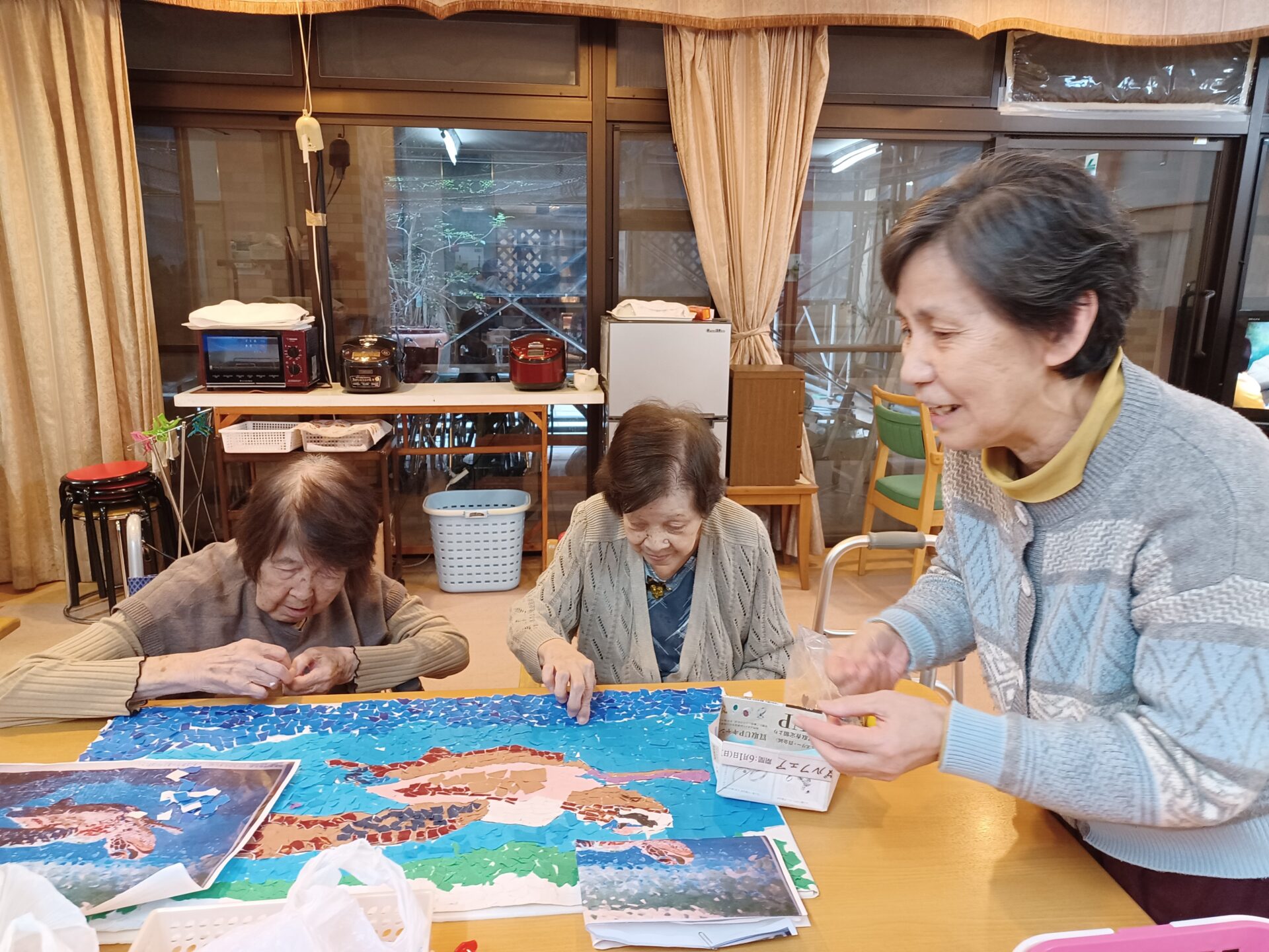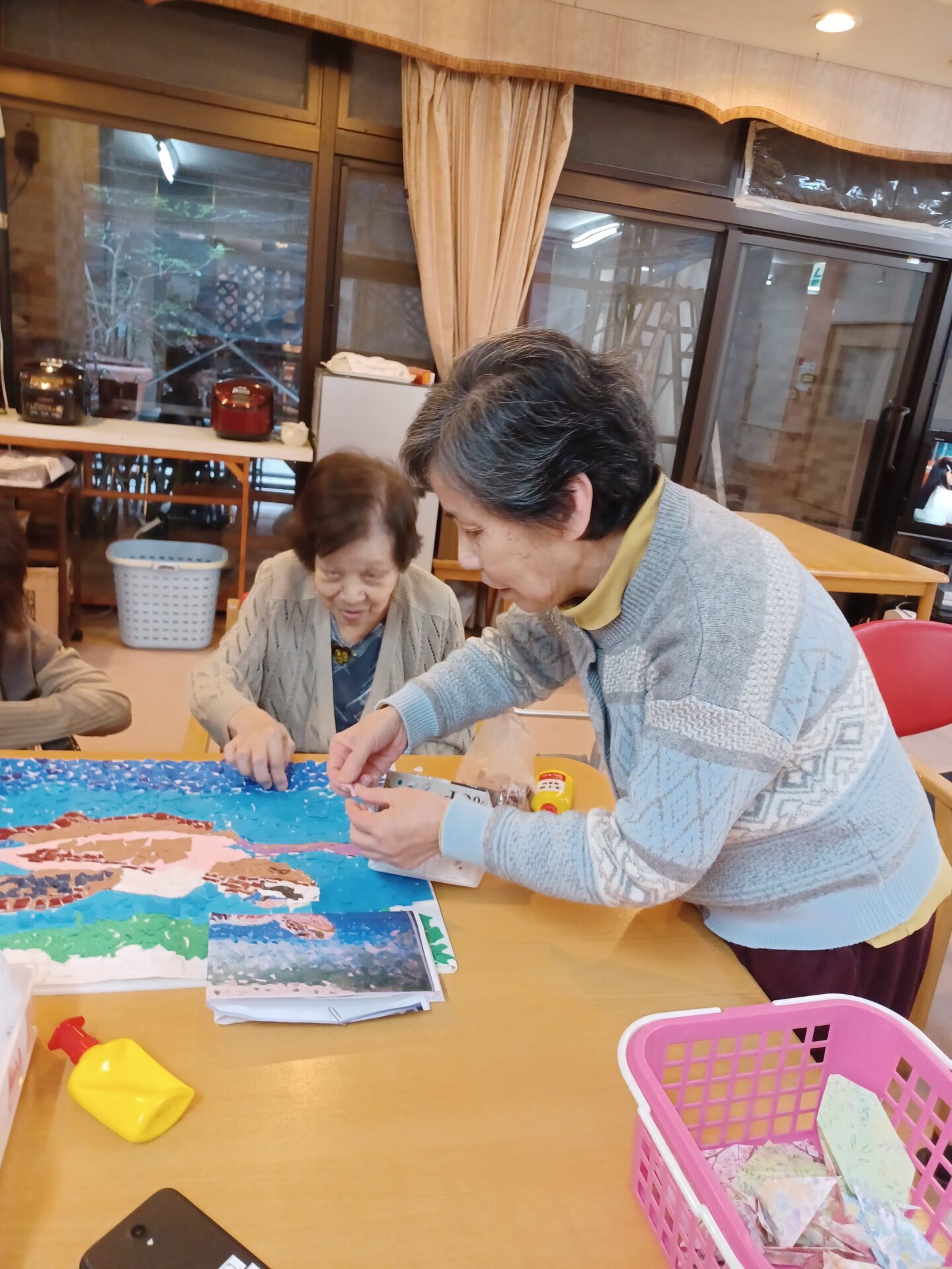 少しでもいろんなご入居者に貼り絵作成の参加をして頂きたいと思い、