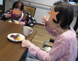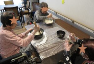 急遽、ごまをする作業が加わり食べる担当だった利用者様にお願いする事態となりました。
