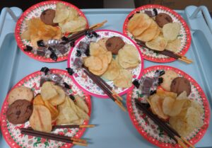この日は、甘いジュースとおやつ盛り合わせです。