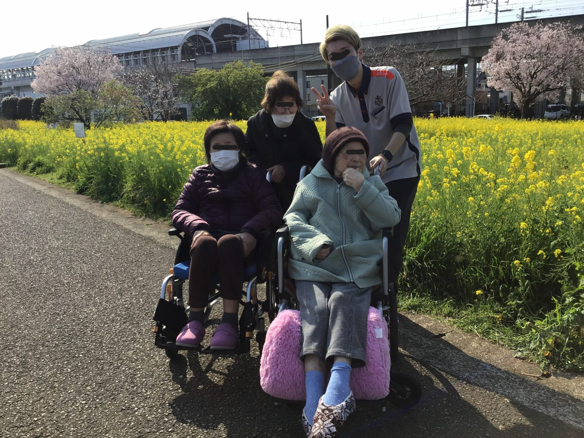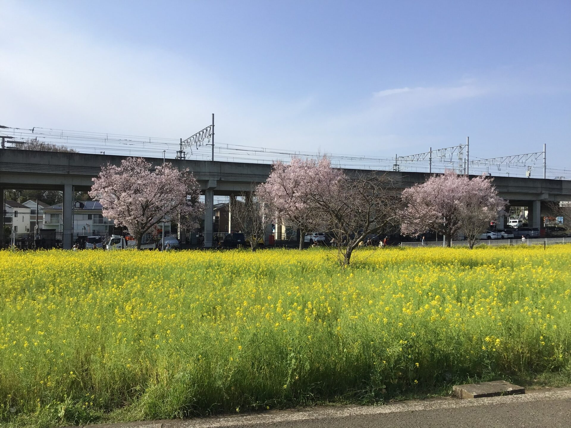 お迎えの際に川和町駅近くに桜と菜の花畑があり、