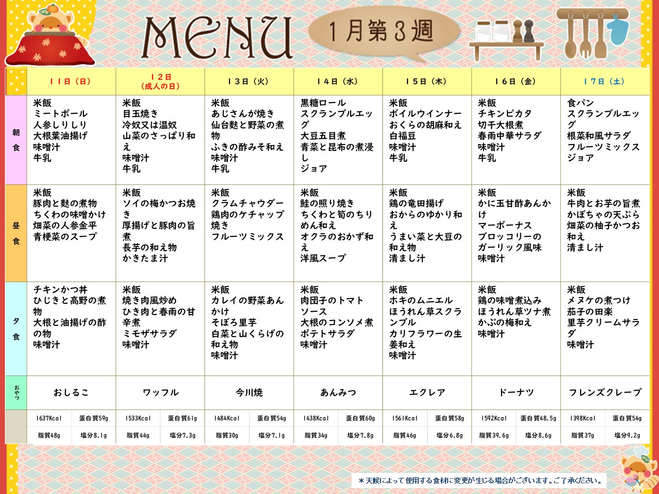 1月第3週(1/11~1/17日)献立表