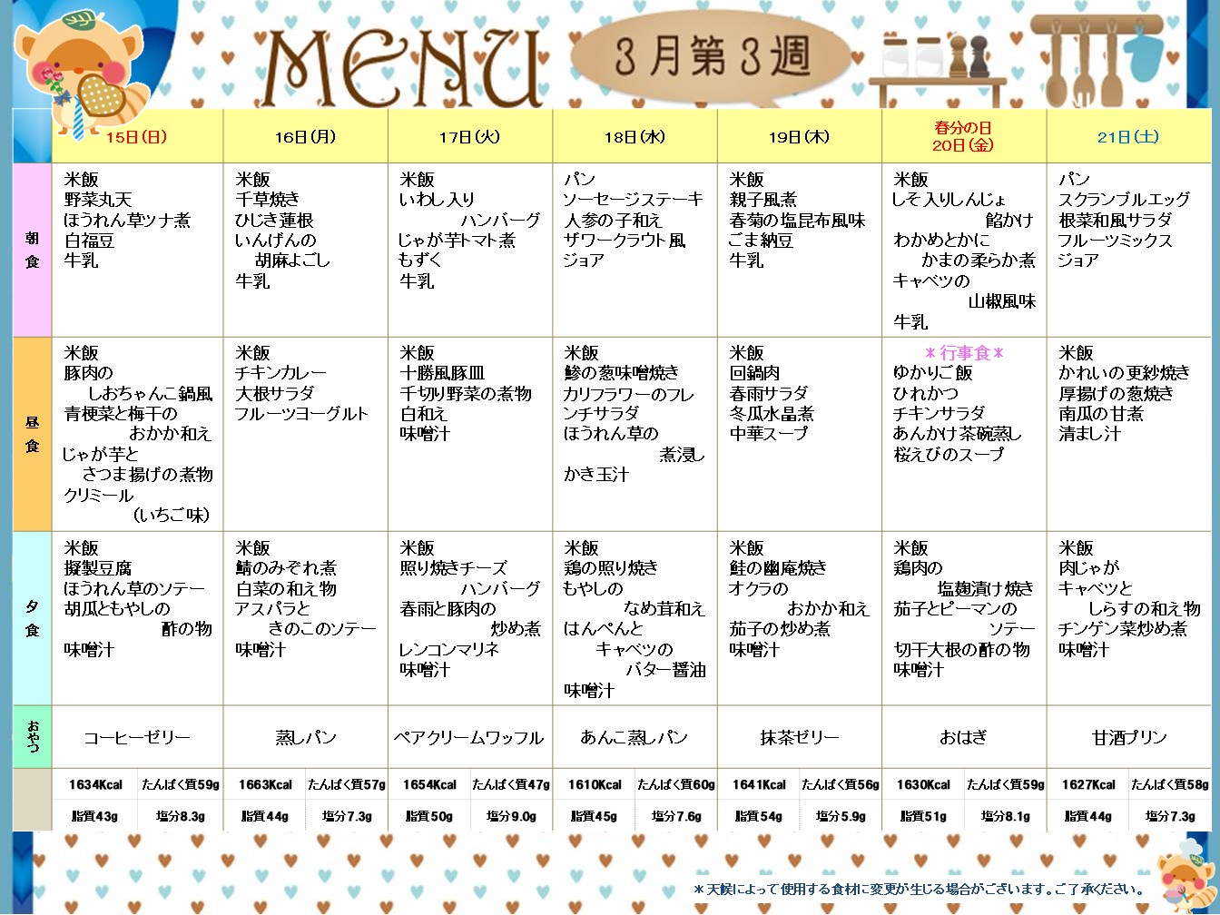 3月第3週(3/15~3/21)献立表